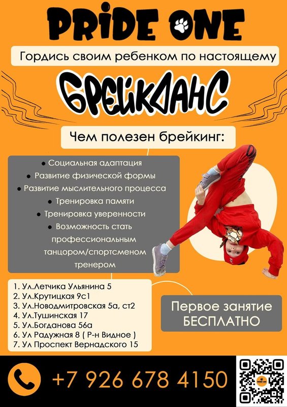 Все мы учились в школе, многие закончили университет или институт. Однако в студии брейк-данса Pride One мы считаем, что развитие не должно прекращаться никогда!